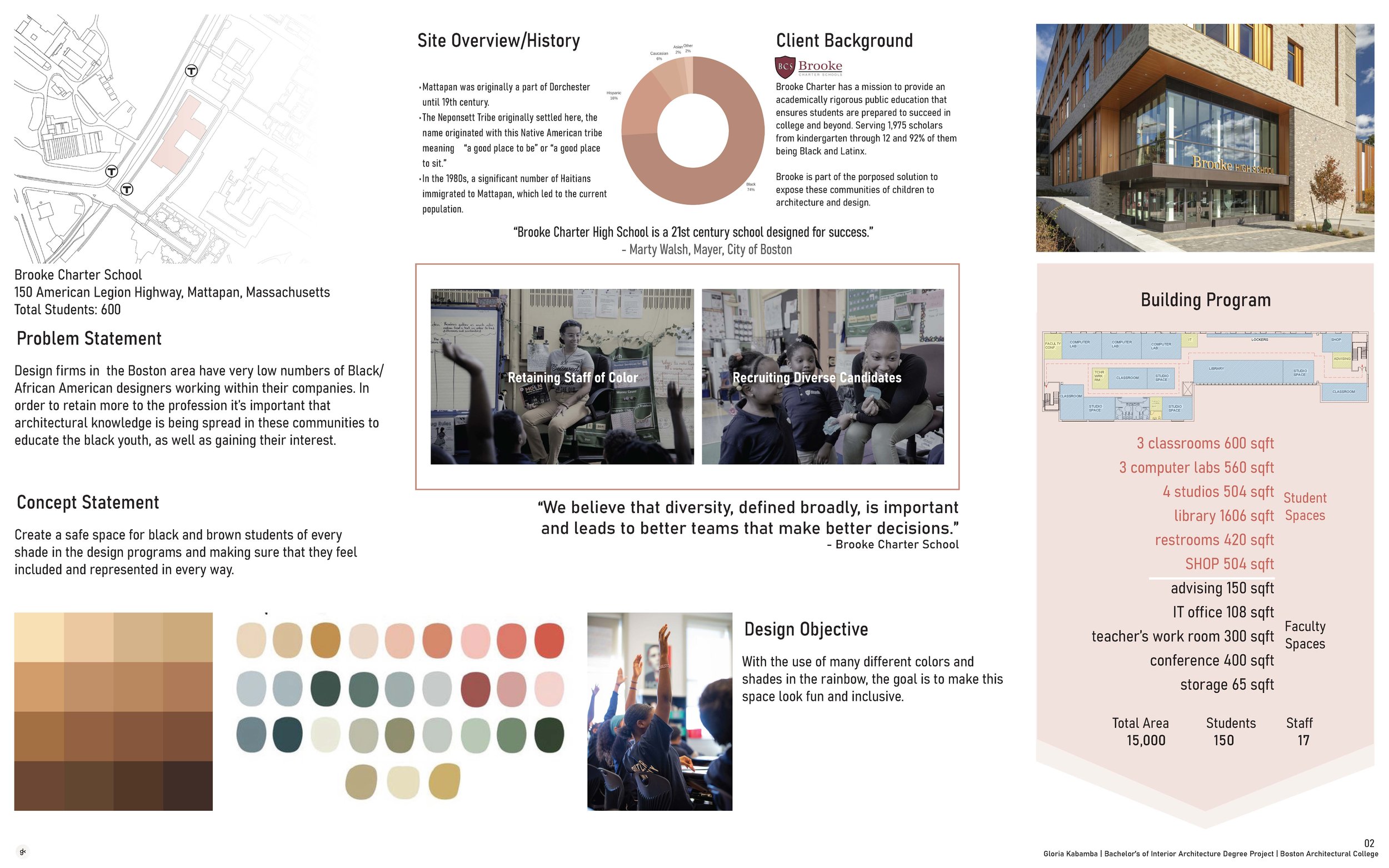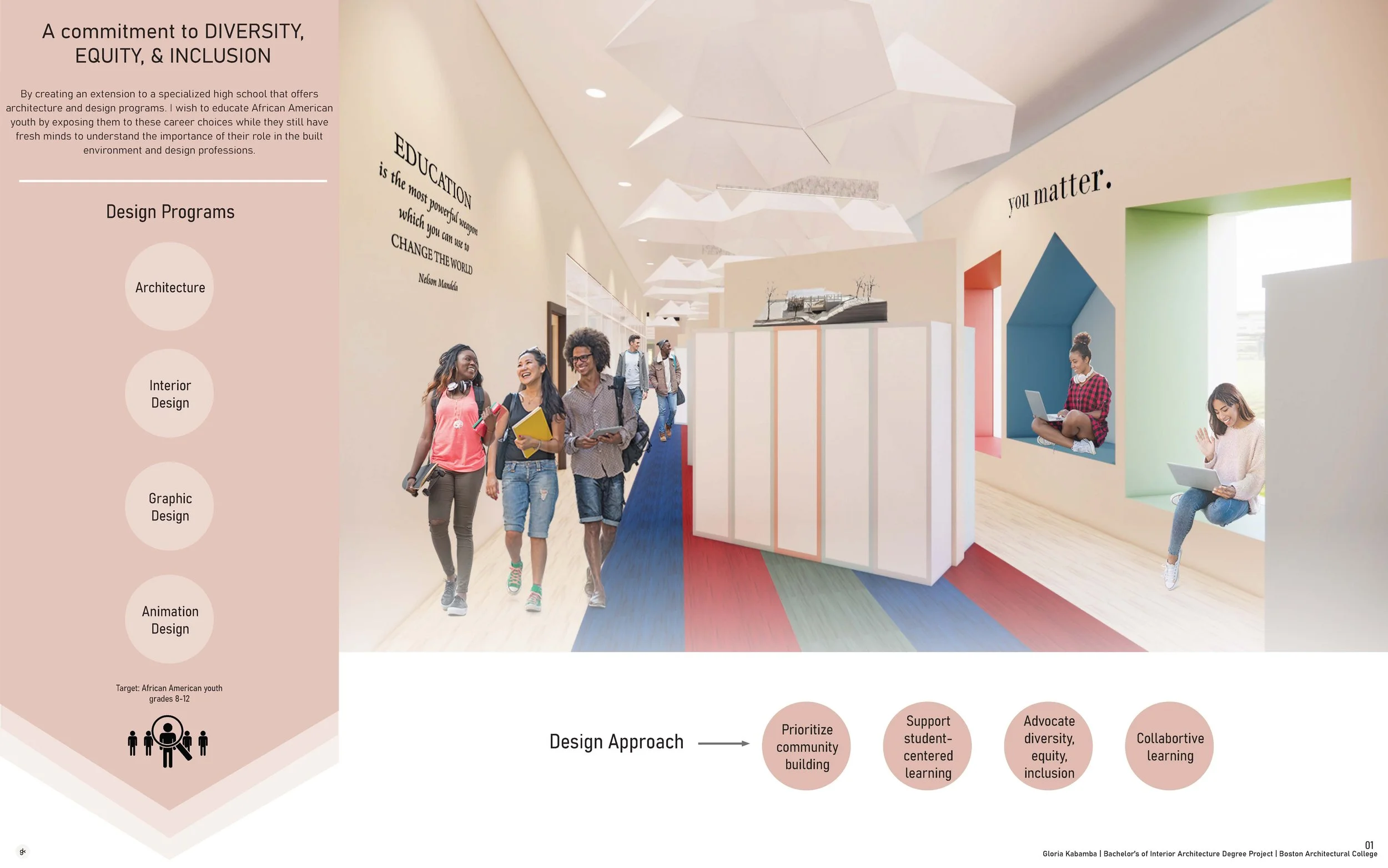 African Americans are grossly underrepresented within architectural and design education and practice. Black designers play a large role in creating more equitable spaces in urban communities. In order to advance their valuable thoughts and improve the future of the built environment, there must be better access and solid design education which would support and engage a larger crowd of young people towards the profession.